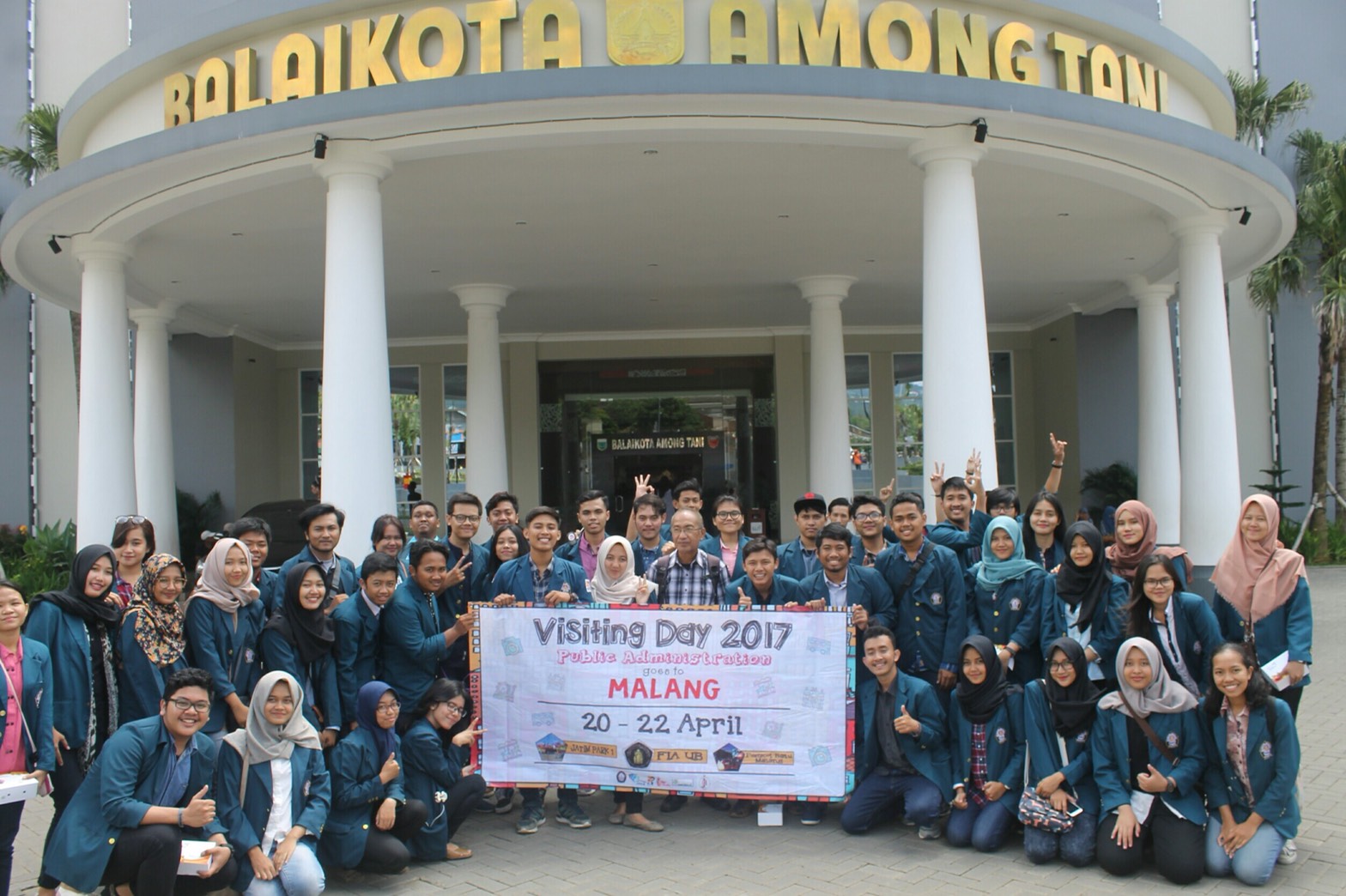 Kunjungan ke instansi pemerintahan kali ini mengangkat tema “Kerja Sama Antar Daerah Dalam Meningkatkan Potensi Pariwisata Kota Batu”. Hal tersebut sangatlah penting bagi para calon administrator publik untuk mempelajari bagaimana membangun iklim kerja sama yang baik sehingga dapat memaksimalkan suatu potensi yang dimiliki oleh daerah tertentu. Karena seperti yang kita ketahui, Indonesia memiliki beragam sektor pariwisata yang potensial. Pemilihan Kota Batu sebagai locus kunjungan penelitian kali ini karena Kota Batu merupakan salah satu destinasi wisata yang menarik minat wisatawan baik dari dalam maupun luar Kota Batu. Untuk itu, menjalankan kunjungan ke instansi pemerintahan bertujuan untuk memperoleh tambahan pengetahuan mengenai persoalan kebijakan publik khususnya pada poin tentang membangun kerja sama yang baik untuk menunjang potensi pariwisata di Kota Batu.