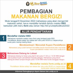 In accordance with the direction of the Rector of Universitas Diponegoro, currently, the academic and student affairs division in collaboration with the communication and business division has developed a healthy food registration system. In this regard, we hereby inform you of the provisions for healthy food registration: Starting December 6, 2022, students who will take […]