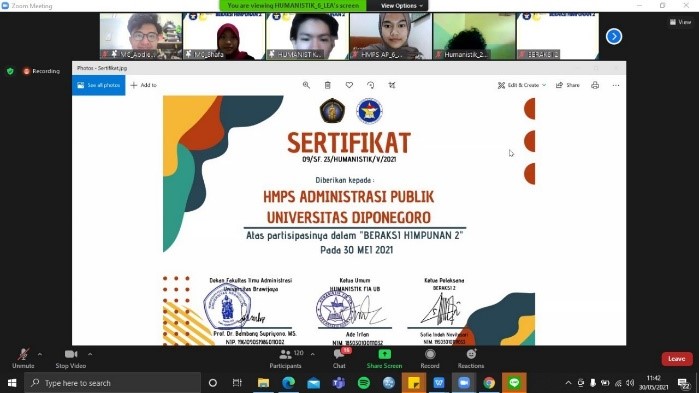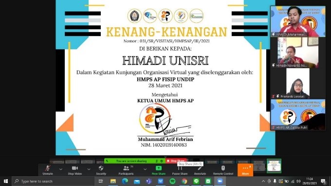 For the period 2021/2022, visitation invitations have been received from other campuses 4 times since the organization’s chairman and vice-chairman were elected last February. Four campuses that have visited HMPS Public Administration, FISIP, Undip were Universitas Lambung Mangkurat, Universitas Slamet Riyadi, Universitas Brawijaya, and Universitas Sultan Ageng Tirtayasa. Meanwhile, for the previous period, HMPS Public Administration had also received 3 visitation invitations from different campuses, namely Universitas Parahyangan, Universitas Tidar, and Universitas Udayana. By holding this visitation activity, it can bring HMPS Public Administration to become an organization that has broad relations both between the associations in one campus and different campuses. The formation of this network of relationships is expected to be able to help each other and work together to make every work program issued by each association and each other’s activities successful.