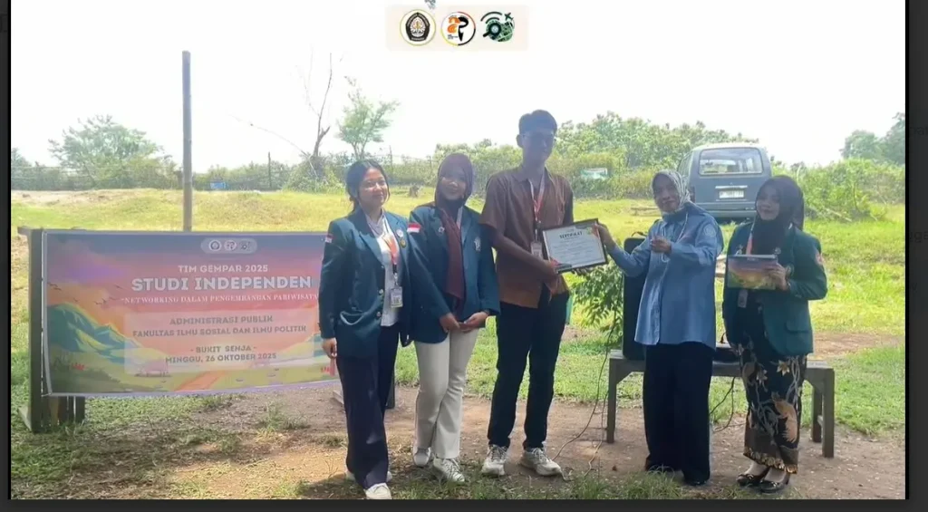 SEMARANG – The Independent Study Team from the Public Administration Study Program, FISIP, Diponegoro University, has successfully held a culminating event titled “Networking in Tourism Development: Optimizing Actor Networks in the Tourism Development of Pokdarwis Bukit Senja, Tembalang Village, Semarang City”. This event, held on October 26, 2025, was attended by 20 undergraduate Public Administration students, accompanied by supervising lecturer Dr. AP. Dra. Tri Yuniningsih, M.Si.