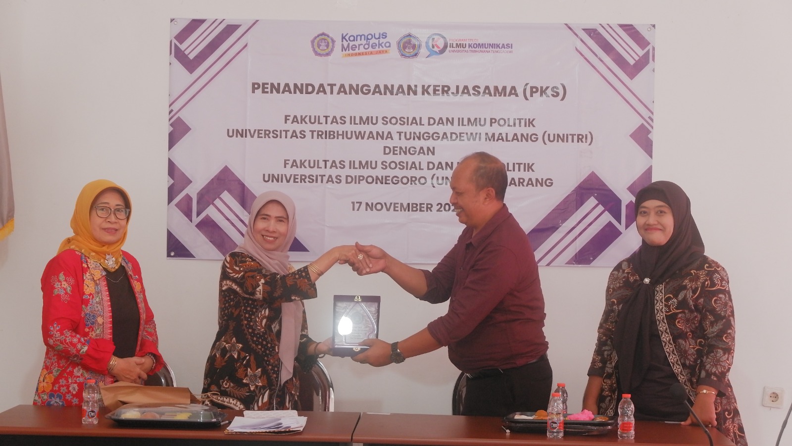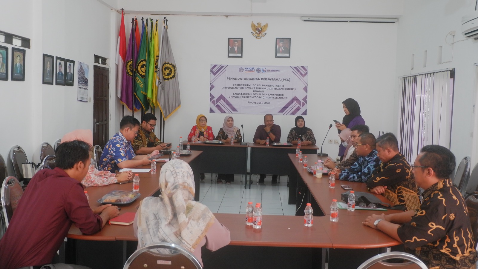 Malang- Dalam rangka peningkatan Tri dharma Perguruan Tinggi dalam Bidang Pendidikan terutama pelaksanaan Merdeka Belajar Kampus Merdeka (MBKM), Fakultas Ilmu Sosial dan Politik (FISIP) Universitas Tribhuwana Tunggadewi (UNITRI) Malang melakukan Penandatanganan Kerjasama (PKS) dan Implementation Of Agreement (IA) dengan Fakultas Ilmu Sosial dan Politik (FISIP) Universitas Diponegoro (UNDIP) Semarang pada Jumat (17/11).