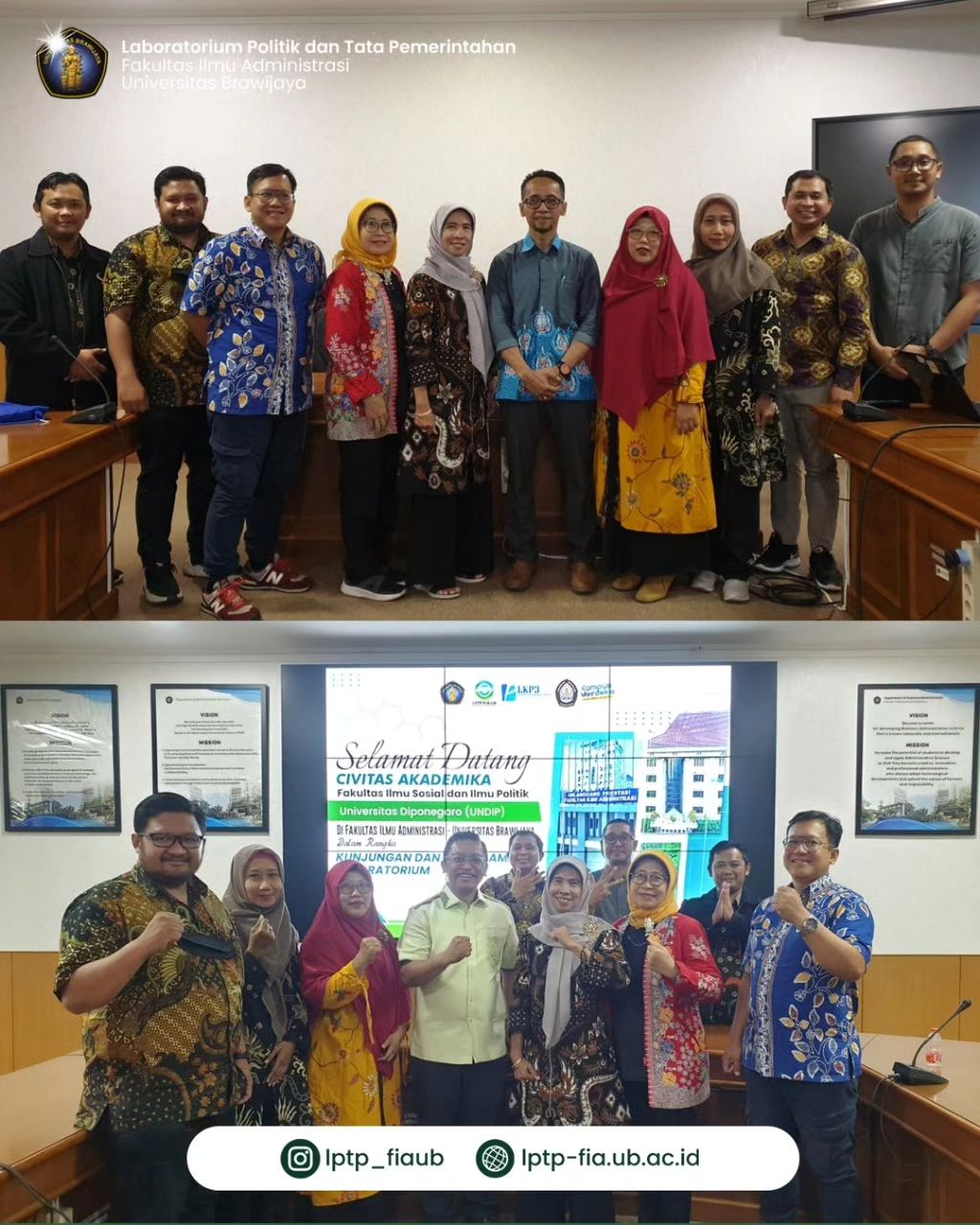 Alhamdulillah, bersamaan dengan kedatangan FISIP UNDIP ke FIA UB, Jumat, 17 November 2023, kami segenap pengurus Laboratorium Politik dan Tata Pemerintahan merasa sangat antusias untuk menyambut kolaborasi yang penuh potensi! Semoga kunjungan ini menjadi awal dari hubungan kerjasama yang erat antara kedua belah pihak. Kami percaya bahwa dengan bersatu, peluang-peluang besar akan terbuka di masa depan.