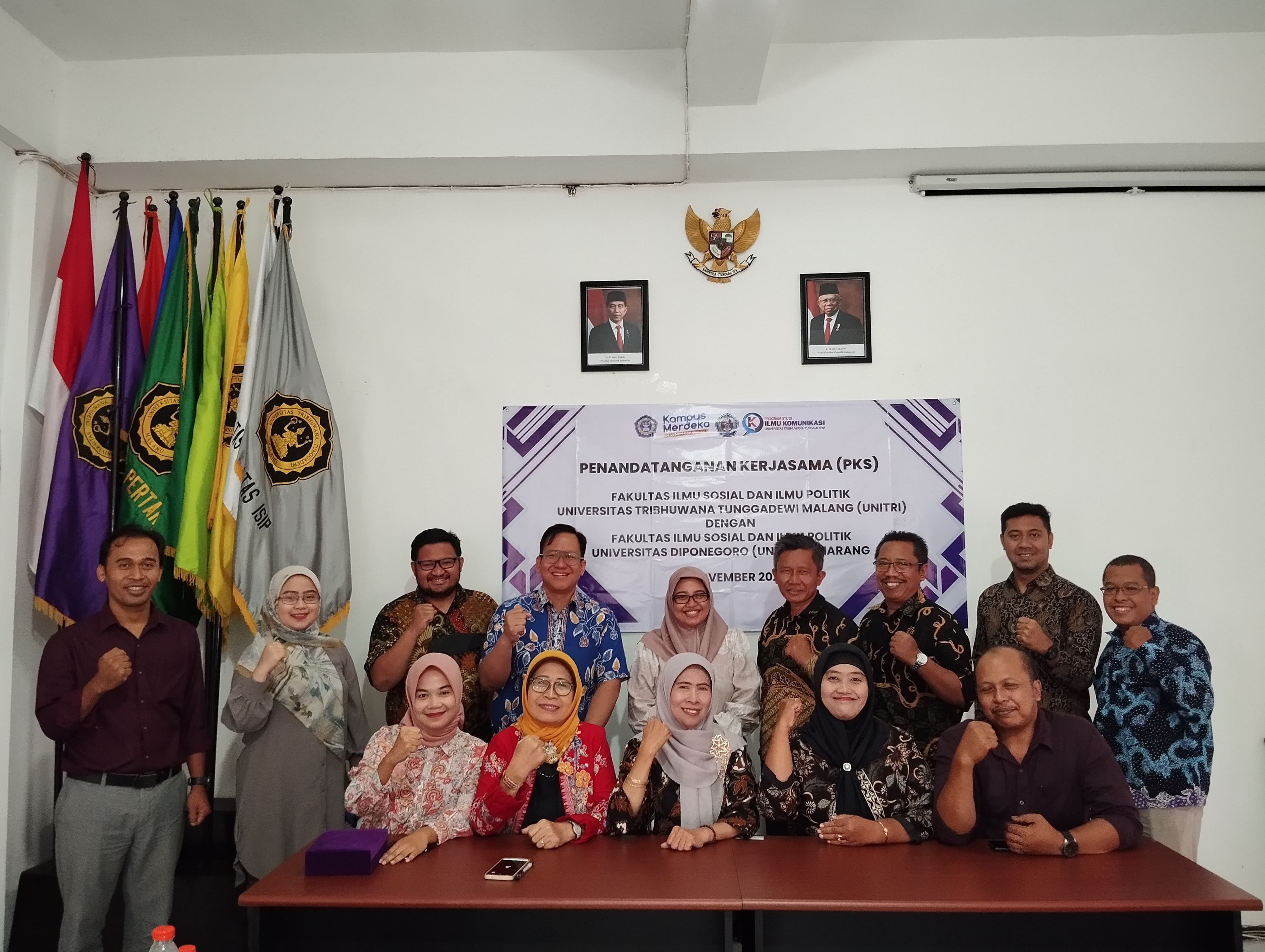 Pada tanggal 17 November 2023 telah ditandatangani Perjanjian Kerja Sama antara FISIP Universitas Diponegoro dengan FISIP UNITRI dalam Tri Dharma Perguruan Tinggi.Rombongan tim FISIP UNDIP terdiri dari Ketua Departemen Administrasi Publik Dr. AP. Dra. Tri Yuniningsih, MSI, Kaprodi S1 Dra. Maesaroh, MSi dan Sekprodi S1 Amny Zarkasi, S.Sos, MSi. Sementara dari Universitas Islam Malang dipimpin langsung oleh Dekan FISIP UNITRI Dr. Agung Suprojo, S.Kom., M.AP