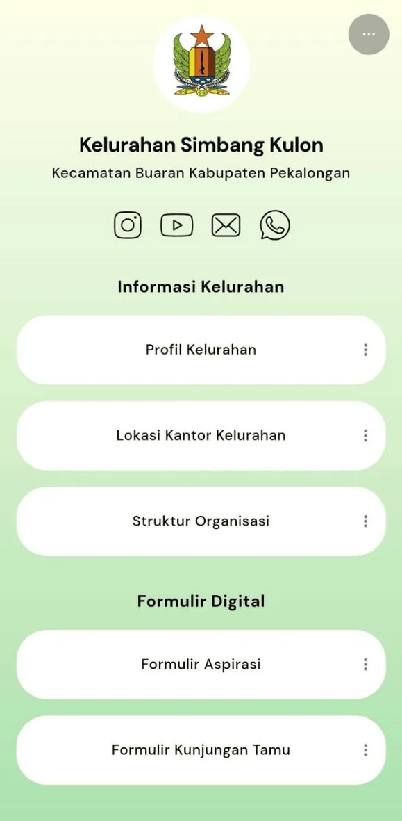 Situs kelurahan yang dibuat oleh Mahasiswa TIM II KKN UNDIP Krisna Aryasatya Nugraha memuat segala informasi dan pelayanan yang ada di Kelurahan Simbang Kulon. Terdapat juga akun media sosial dari Kelurahan yang dapat diikuti oleh masyarakat agar tidak ketinggalan informasi. Selain itu, masyarakat dapat mengakses informasi tentang kelurahan seperti profil, lokasi, peta, dan struktur kelurahan yang baru. Adapun untuk mendorong partisipasi masyarakat, digitalisasi laporan pengaduan serta buku tamu juga disediakan. Situs Kelurahan Simbang Kulon juga menampilkan berbagai informasi mengenai persyaratan pelayanan administrasi yang diperlukan oleh masyarakat. Sehingga masyarakat dapat menyiapkan segala berkas yang dibutuhkan untuk pengurusan administrasi yang diperlukan.