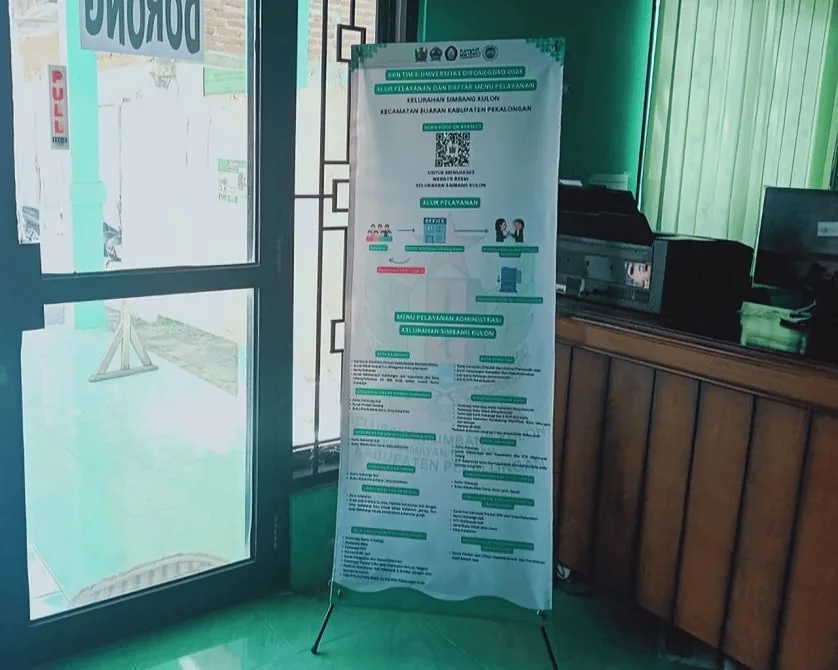 Setelah pembuatan website Kelurahan Simbang Kulon terlaksana, Mahasiswa KKN TIM II UNDIP Krisna Aryasatya Nugraha (05/08/2024) memberikan penjelasan dan pengajaran kepada perangkat kelurahan. Dimulai dari pengenalan tampilan, isi, cara penggunaan, dan proses pembuatan website. Adapun juga penyerahan x-banner kepada Lurah Simbang Kulon yaitu Bapak R. Aghatha Franky Irawan, S.E, sebagai bentuk visualisasi maupun output dari program kerja Digitalisasi Laporan Pengaduan Masyarakat dan Buku Tamu Kelurahan. Banner tersebut berisikan alur pelayanan, persyaratan pengurusan administrasi, dan QR-Code website Kelurahan Simbang Kulon.