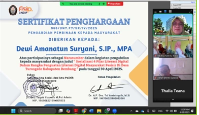 Semarang, Rabu, 30 April 2025 — Dalam upaya meningkatkan keterampilan masyarakat pesisir terkait literasi digital, Departemen Administrasi Publik, Fakultas Ilmu Sosial dan Ilmu Politik (FISIP), Universitas Diponegoro, melaksanakan kegiatan pengabdian kepada masyarakat di Desa Turusgede, Kabupaten Rembang.
