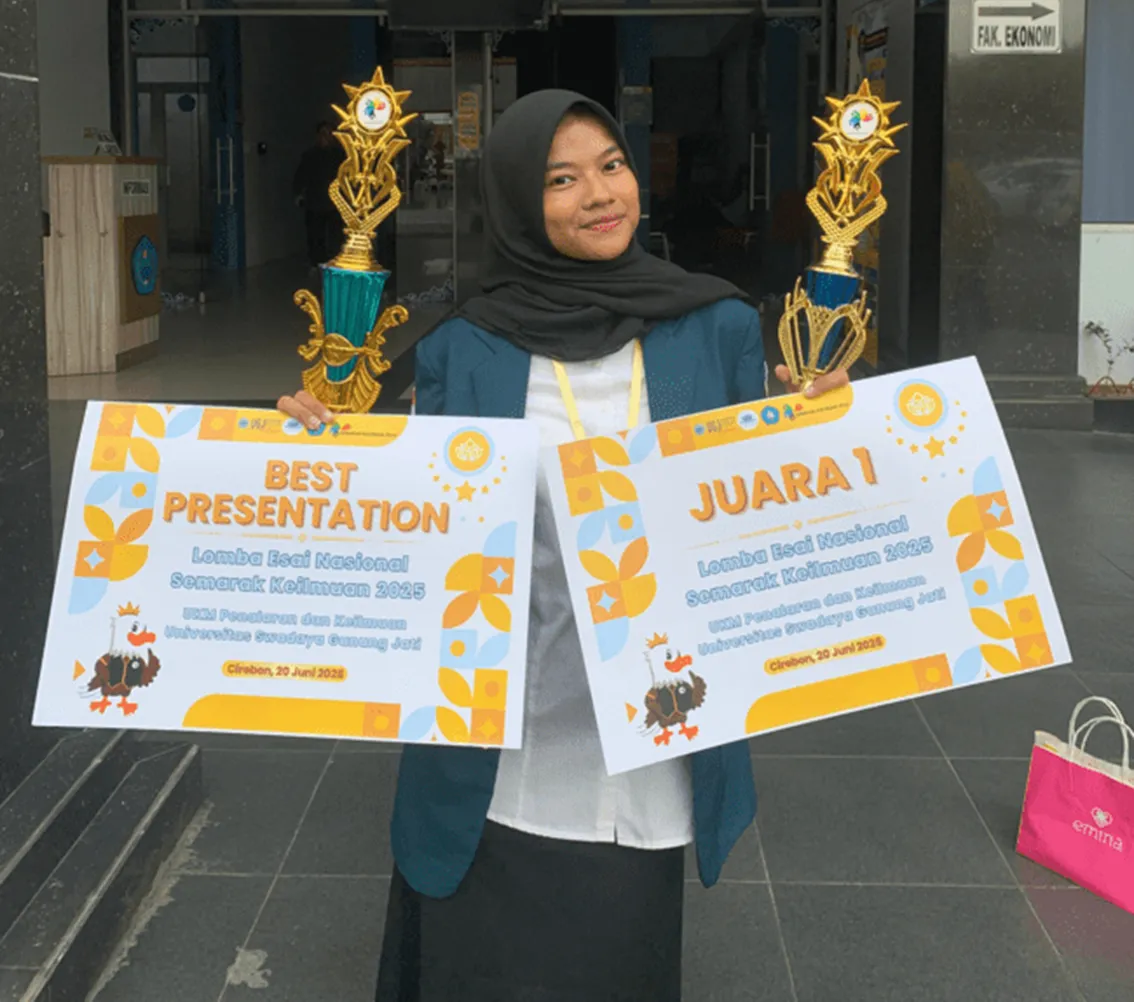 Semarang, June 20, 2025 – A FISIP UNDIP student, Fara Nur Aliya, has achieved another proud moment. She studies Public Administration at the Faculty of Social and Political Sciences. Fara won 1st Place and Best Presentation at the 2025 Semarak Keilmuan National Essay Competition. This national event, organized by Swadaya Gunung Jati University’s Student Scientific Reasoning and Knowledge Unit, took place in Cirebon, West Java, on June 20, 2025.